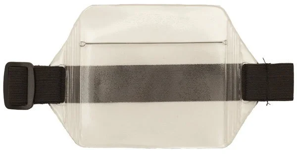 Slitesterk plastlomme for ID kort eller annen merking. Leveres med sort elastisk bånd. Max størrelse på innlegg: 63x77mm