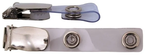 Krommet krokodilleclips for bruk til å henge kortholder på klær o.l.