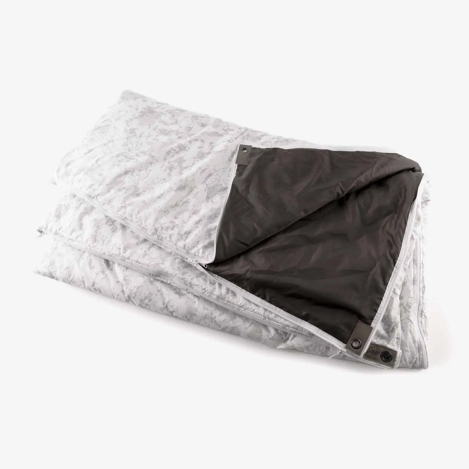 Som vindsekk/pose er Fjellduken Thermo Extreme 2,2 x 1 meter. Vatteringen er 170g pr. m2. (Alle de andre thermodukene har 60g pr. m2.)