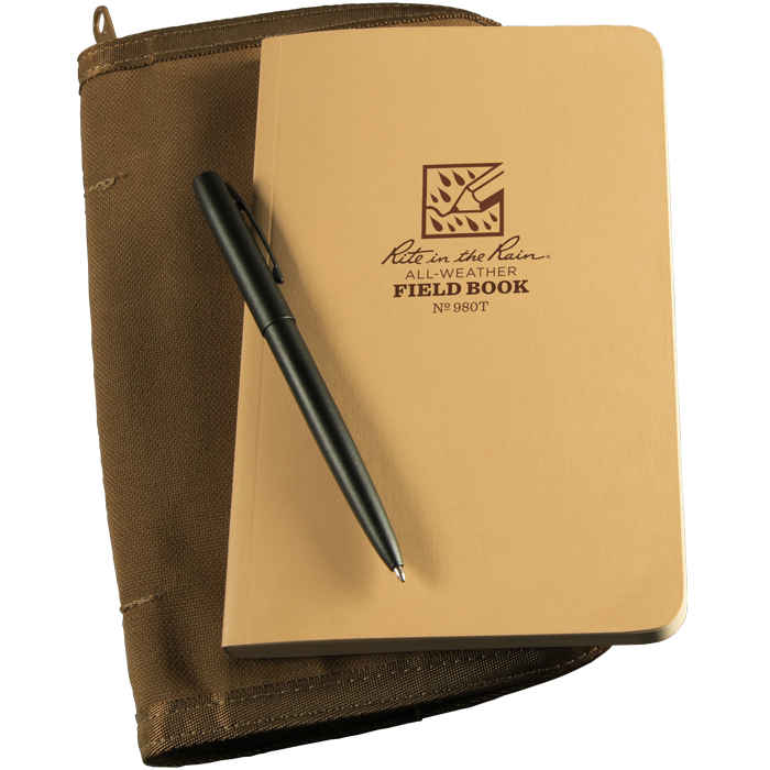- No. 980T Tactical Field Book – Tan (4 5/8 in x 7 1/4 in) The tough Field-Flex cover will withstand the rigors of battle while fitting comfortably into your cargo pants pocket. All pages are printed on non-glare 32# Tan Rite in the Rain All-Weather Paper. Each sheet is perforated for easy removal. Use the Universal pattern for notes and scaled drawings. The book also contains 16 pages of tactical reference material, including: Sector sketch preparation, unit symbol charts, mission graphics, Call for Fire procedure and much more. 160 pages (80 sheets), 4 5/8 in x 7 1/4 in