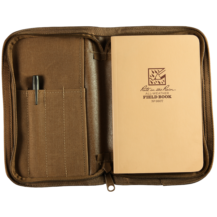 - No. C980 CORDURA fabric Cover – Tan This tough CORDURA fabric Bound Book Cover will fit all of our standard 4 5/8 in x 7 or 4 5/8 in x 7 1/2 in Notebooks, Field-Flex Books or Bound Books. It has a rugged zipper closure and holds up to 4 writing utensils!