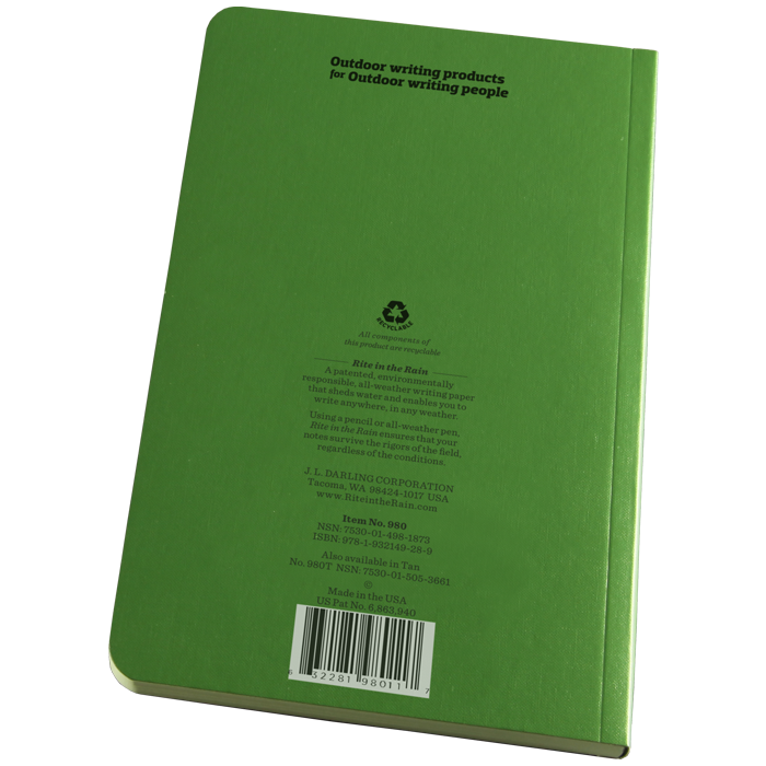 The tough Field-Flex cover will withstand the rigors of battle while fitting comfortably into your cargo pant pocket. Pages are printed on 4 5/8 in x 7 1/4 in non-glare 32# Green Rite in the Rain All-Weather Paper. Each sheet is perforated for easy removal. Use the Universal pattern for notes and scaled drawings. The book also contains 16 pages of tactical reference material, including: Sector sketch preparation, unit symbol charts, mission graphics, call for fire procedure and much more. 160 pages (80 sheets)