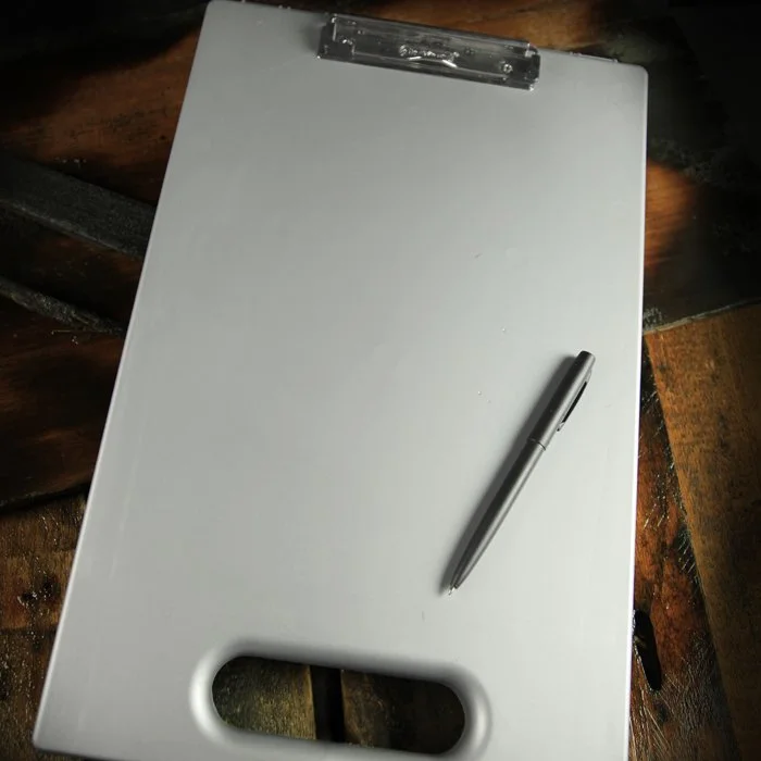 Praktisk skriveunderlag med plass til papir, penn og annet utstyr du måtte trenge ute i felten.