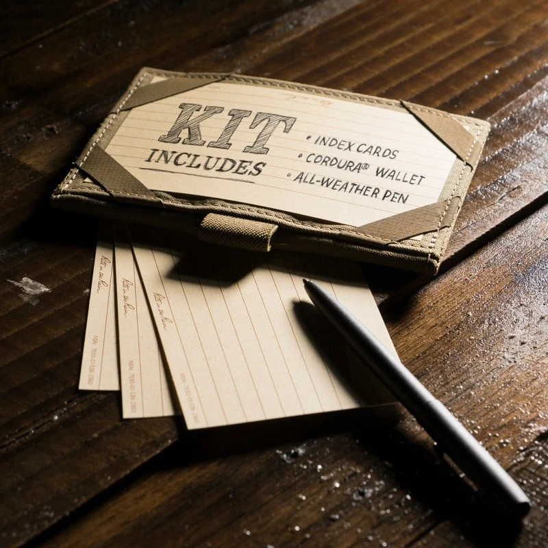 Besides securing your cards and pen, this weather resistant wallet also serves as an on-the-go writing surface.